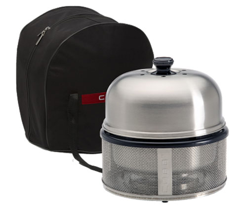 Det hengslede lokket lar deg omslutte kullgrillen helt, og gir deg perfekt tilberedt mat hver gang. Det innebygde termometeret lar deg enkelt se innetemperaturen, uten å løfte lokket og forårsaker at varmen slipper ut. Grillen tåler en temperatur opp mot 1000 grader.